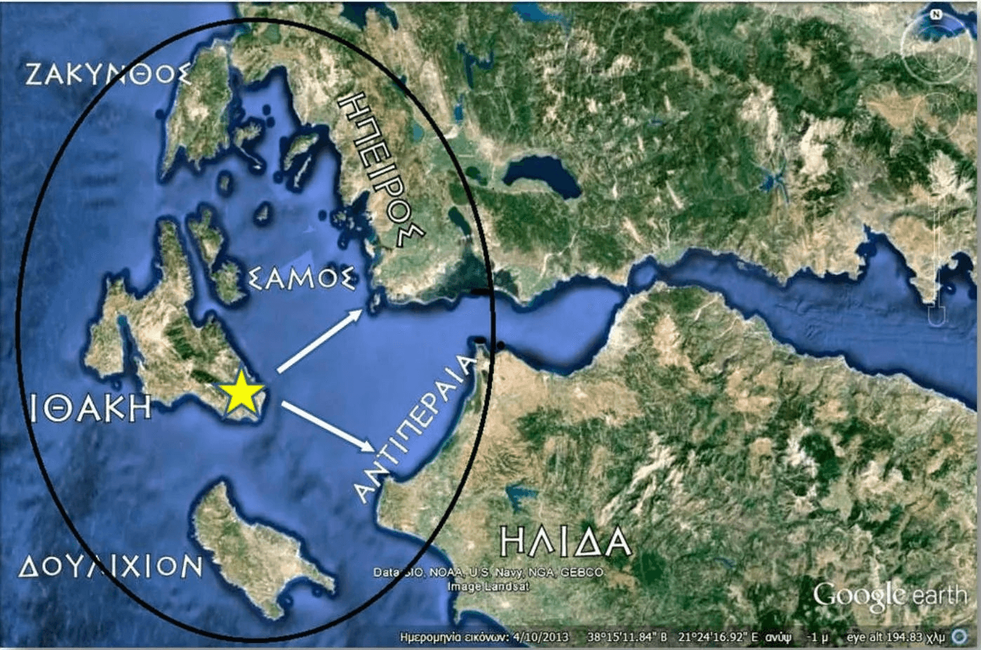 The theory suggests that the four major Homeric toponyms (Ithaca, Dulichium, Samos, Zakynthos) were retained in historical memory, but their geographical positions became inversely proportional to their actual Mycenaean placements.