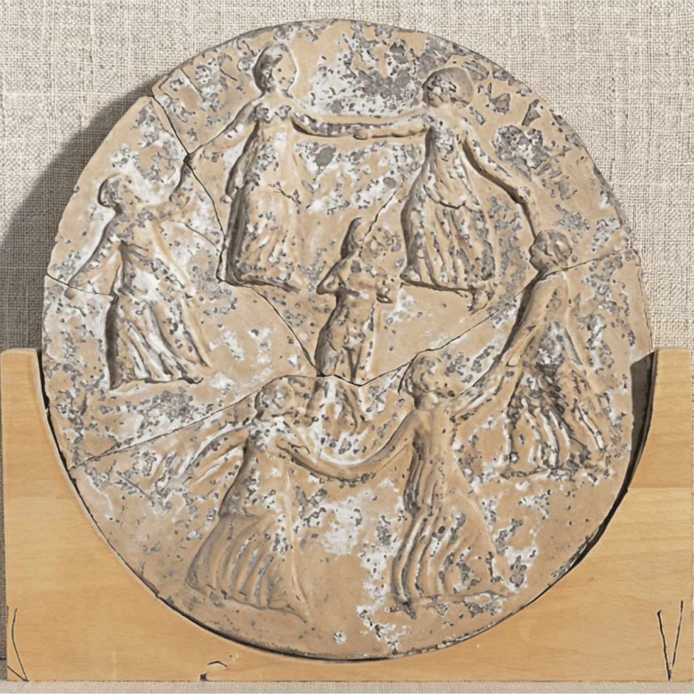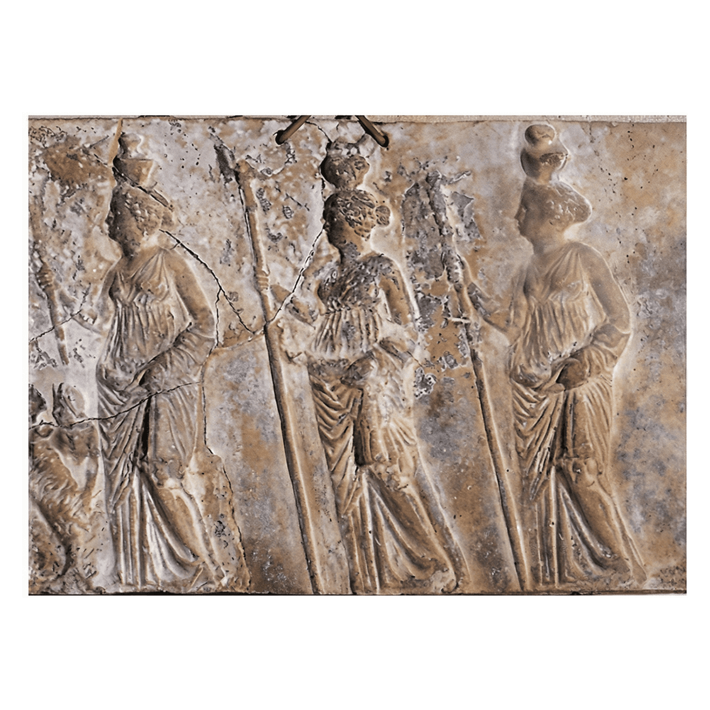 Figurines and Tablets: Excavators recovered a figurine of the god Pan and clay tablets or tiles featuring representations of Nymphs in ritual dances with Pan.